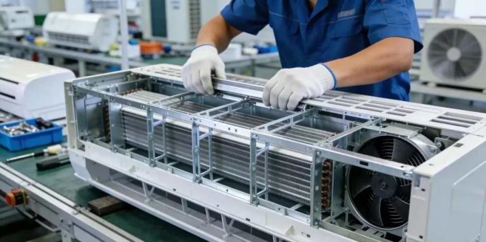 রেফ্রিজারেটর এবং এয়ার কন্ডিশনারগুলির বাইরের শেল ফ্রেম এবং অভ্যন্তরীণ সমর্থন উপাদানগুলির জন্য ব্যবহৃত হয়; ওয়াশিং মেশিনের জন্য বেস ফ্রেম; প্রদর্শনের জন্য ফ্রেম এবং বন্ধনী; পাইলস ইত্যাদি চার্জ করার জন্য বাইরের শেল ফ্রেম এবং অভ্যন্তরীণ পরিবাহী সমর্থন উপাদান। লাইটওয়েট, উচ্চ নির্ভুলতা এবং নান্দনিকভাবে আনন্দদায়ক পৃষ্ঠের প্রয়োজন, এবং অতিরিক্ত প্রক্রিয়া যেমন পাঞ্চিং এবং নমন একত্রিত করা যেতে পারে।
