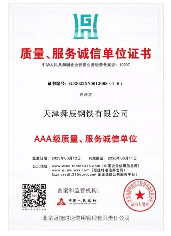তিয়ানজিন শুনচেন ইন্ডাস্ট্রিয়াল কোম্পানি তিন দশকেরও বেশি সময় ধরে স্ট্রাকচারাল স্টিলের উৎপাদনে নিবেদিত, কাস্টমাইজড ইউ চ্যানেল স্টিলস তৈরিতে গ্রাহকদের পেশাদার সহায়তা প্রদান করে। সংস্থাটির আন্তর্জাতিক ISO 9000, 3A সিস্টেম এবং ইউরোপীয় ইউনিয়নের CE চিহ্ন সহ একাধিক শংসাপত্র রয়েছে। 12টি কঠোর প্রক্রিয়া প্রবাহ এবং ব্যাপক পরিদর্শন এবং নিয়ন্ত্রণের তিনটি স্তরের মাধ্যমে, এটি 12 বছর পর্যন্ত শূন্য বার্ষিক গুণমান এবং নিরাপত্তা দুর্ঘটনা এবং শূন্য অর্ডার ডিফল্টের একটি স্থিতিশীল রেকর্ড অর্জন করেছে।